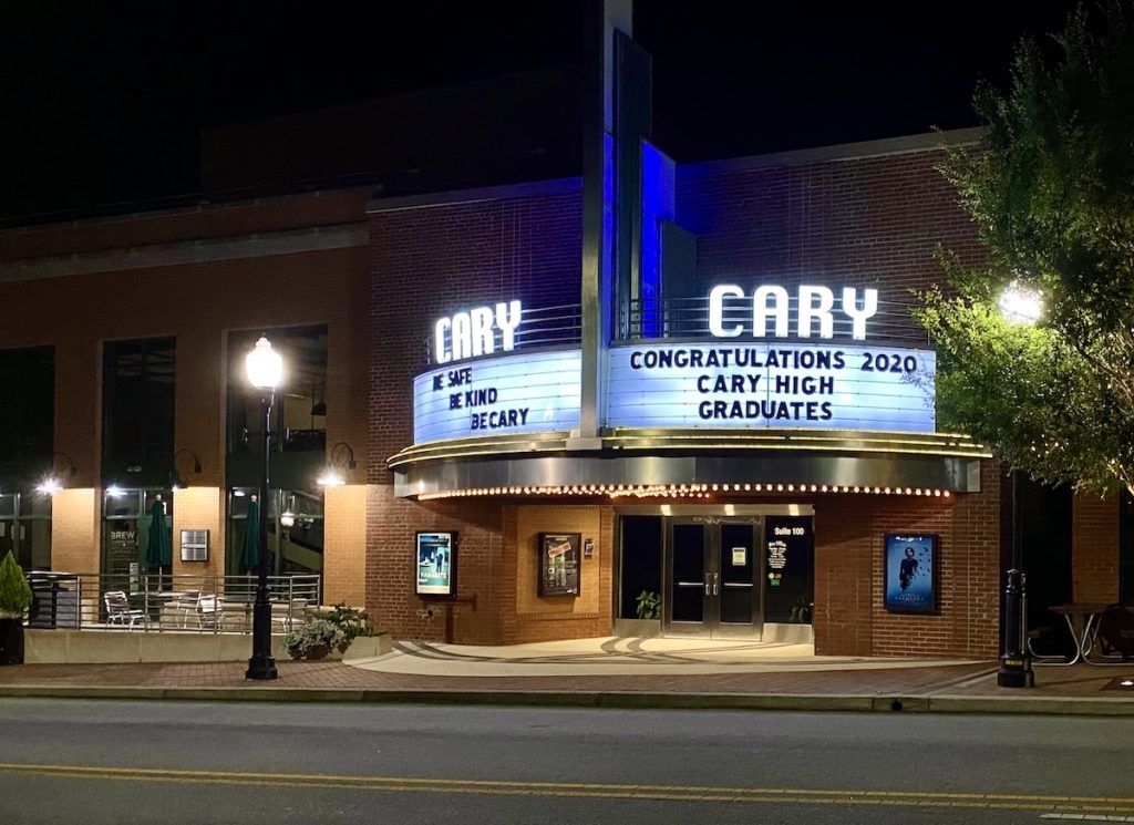 If you’ve been following local news then you know that the Cary Graduates Together showcase is well underway. Happy faces of 2020 high school graduates are being streamed on two brick walls of the Cary Arts Center from now through mid August. Each week features photos of graduates from a different local high school. The Cary Theater’s marquee also honors the featured high school as it changes, each week.